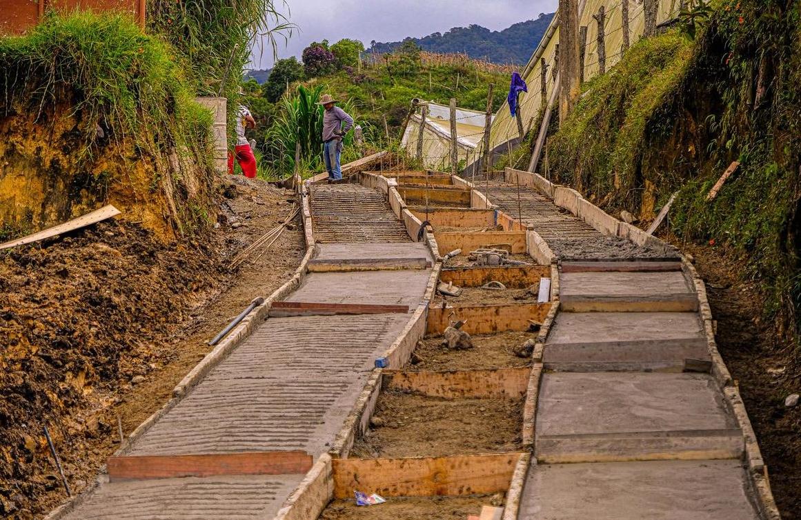La Administración Municipal de El Carmen de Viboral, en articulación con la comunidad, avanza en un 70 % en la construcción de más de 300 metros de rieles en la vereda Betania.