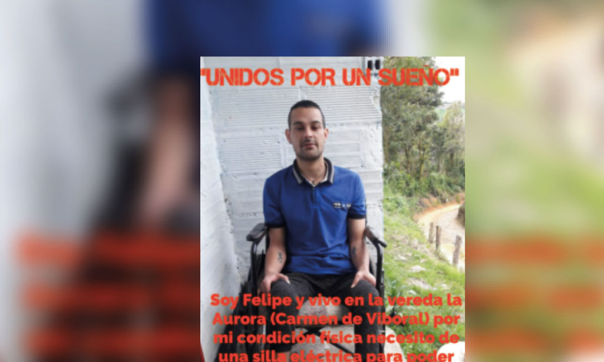 Un hombre residente de la vereda La Aurora del municipio de El Carmen de Viboral, requiere, por su condición física, una silla de ruedas eléctrica para poder movilizarse con mayor facilidad, por tal motivo, ha venido compartiendo a través de redes sociales esta petición, a la que la comunidad se ha ido sumando.
