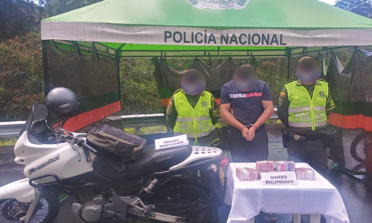 A través de plan de registro a personas y vehículos, autoridades lograron la captura de un ciudadano que portaba 140 millones de pesos que, al parecer, habían sido hurtados minutos antes en el municipio de El Santuario.