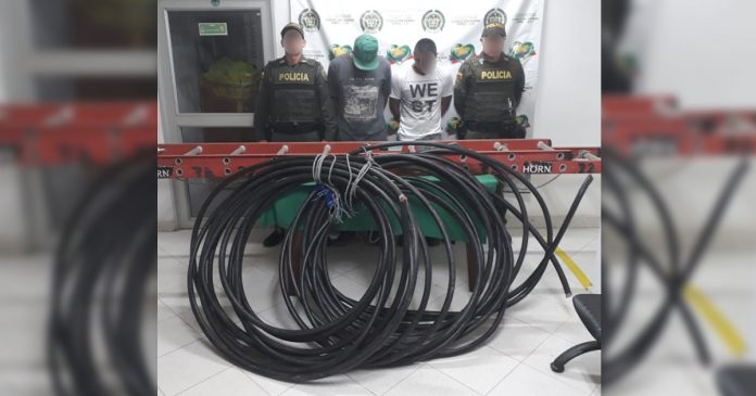 En flagrancia fueron capturados dos hombres de 32 y 28 años de edad, oriundos de Medellín y Marinilla, respectivamente, cuando hurtaban cable telefónico y de internet en una vereda de El Santuario. Los presuntos delincuentes fueron sorprendidos por la Policía luego de que varias personas de la comunidad alertaran sobre los hechos.