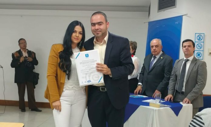 El gerente de la entidad, John Jairo Arcila, fue el encargado de recibir la certificación de calidad bajo la norma ISO-9001-2015 por parte del ente certificador.