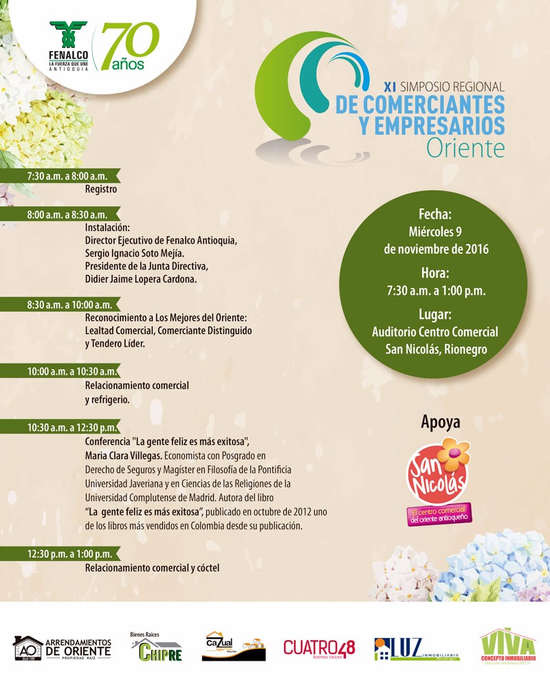 Este miércoles 9 de noviembre, Fenalco Regional Oriente realizará el XI Simposio Regional de Comerciantes del Oriente, evento anual de asociación que reúne a empresarios y comerciantes de la región.