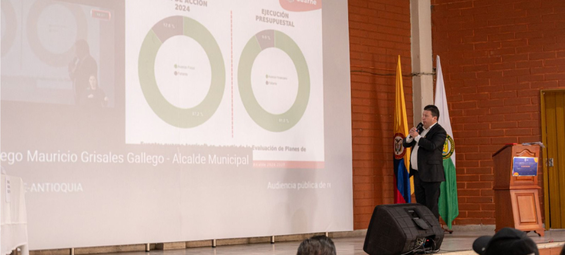 Durante su intervención, destacó una ejecución física del Plan de Acción 2024 del 87,2 % y una ejecución presupuestal del 91,0 %, cifras que, según el Departamento Nacional de Planeación (DNP), sitúan al municipio en un nivel sobresaliente.