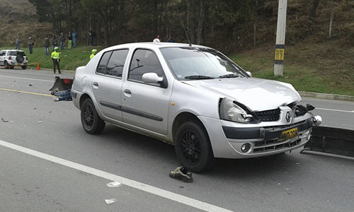 En medio de un accidente de tránsito que se registró la mañana de este martes 19 de abril, un hombre de aproximadamente 50 años de edad perdió la vida al colisionar con dos vehículos particulares, mientras se desplazaba en una motocicleta por la vía Hipódromo-Aerpuerto José María Córdova, en el kilómetro 1 + 300, jurisdicción del municipio de Guarne.