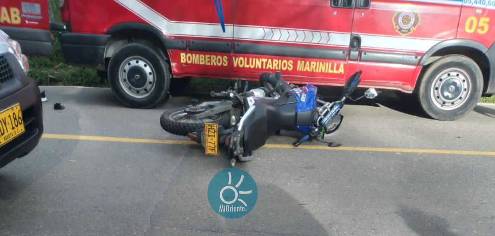 La mujer se movilizaba en una motocicleta y colisionó contra un vehículo a la altura del sector conocido como Puente Tierra, en la vía que de Marinilla conduce hacia El Peñol. La mujer falleció y otro hombre resultó herido, a esta hora es trasladado a un centro asistencial.