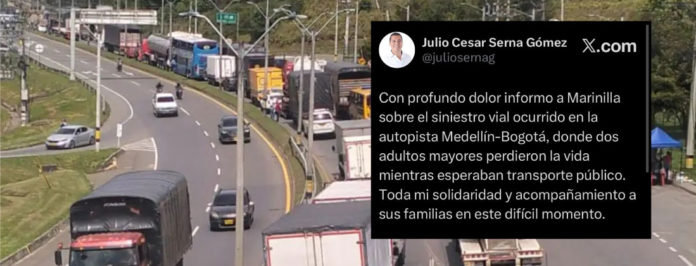 Dos peatones murieron tras ser atropellados por un conductor que dio positivo en prueba de alcoholemia en la autopista Medellín–Bogotá