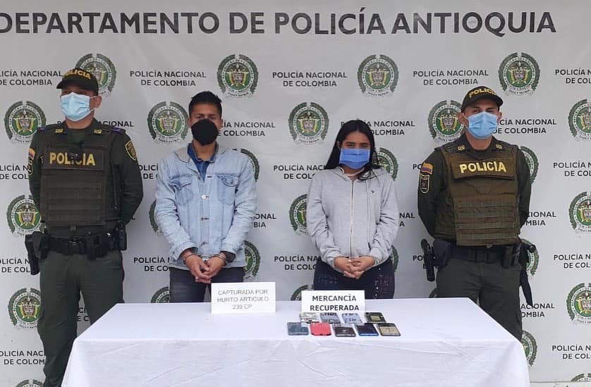 La Policía Nacional incautó nueve celulares que, presuntamente, habrían sido robados por dos personas bajo la modalidad de cosquilleo mientras las víctimas disfrutaban de las fiestas tradicionales de Marinilla.