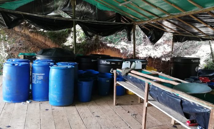 En el lugar fueron encontrados 13 kilos de esta sustancia y decenas de insumos para su elaboración como 2.585 galones de acetona, 550 galones de alcoholes primarios, 225 galones de ácido sulfúrico y 175 galones de ACPM.