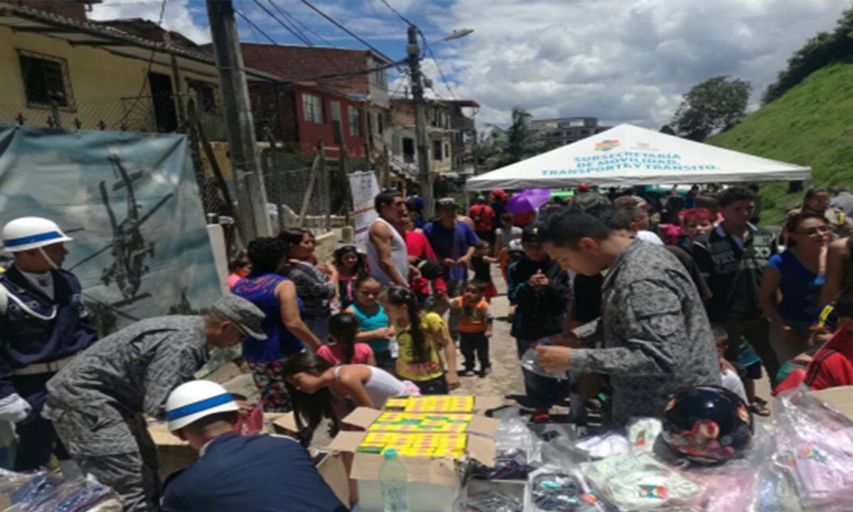 Las diferentes entidades llegaron a este sector con oferta de servicios, muestra folclórica y cultural y diferentes actividades recreativas, y de esta manera, niños, jóvenes y adultos, disfrutaron de una jornada llena de sorpresas y recibieron alrededor de 1500 artículos donados por el Comando Aéreo de Combate No.5, como cascos para moto, calzado, gafas deportivas, ropa, entre otros.