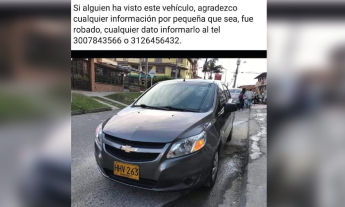 Las personas que hayan visto el vehículo pueden comunicarse al número 3007843566 o al 3126456432.