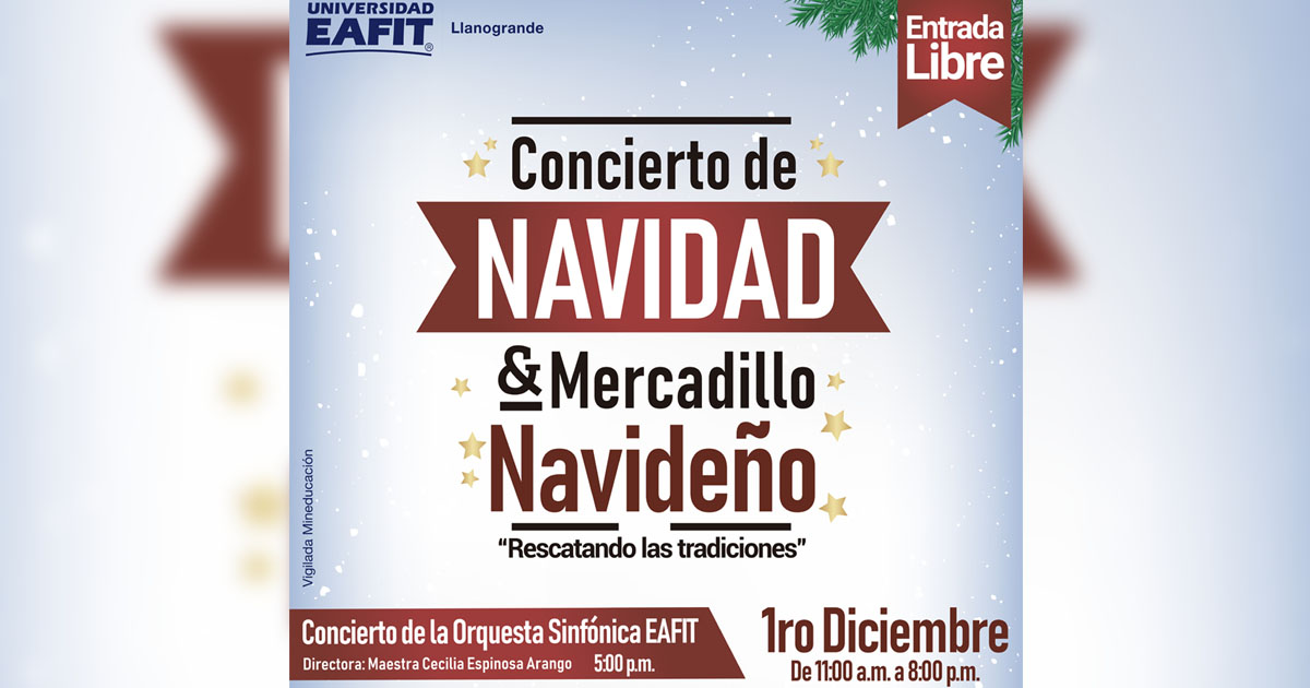 El sábado 30 de noviembre se llevará a cabo el tradicional concierto de navidad de la Universidad EAFIT Llanogrande, un evento familiar que le da la bienvenida a esta importante época del año e invita a compartir a todas las personas de manera gratuita.