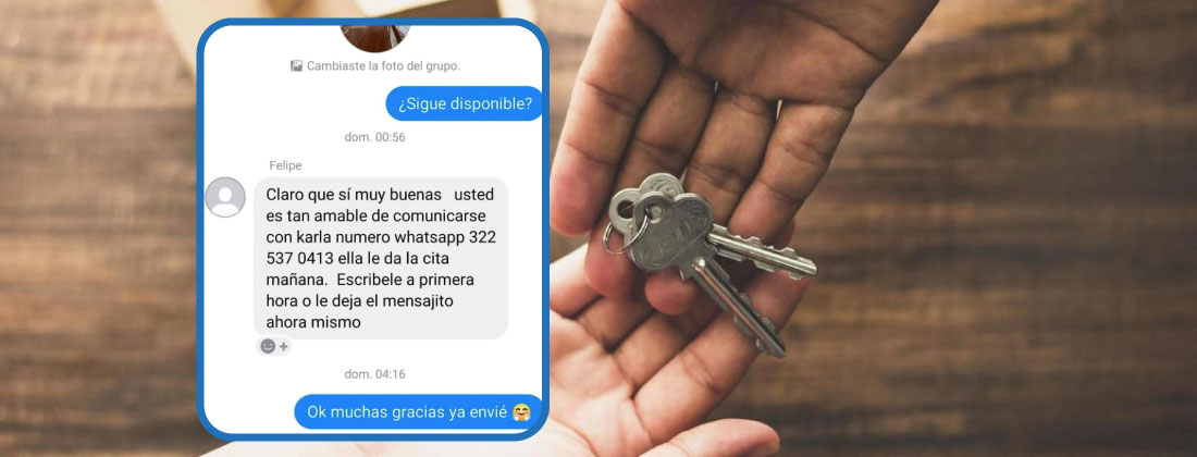 En una de las conversaciones entre los delincuentes y las posibles víctimas de estafa, quienes preguntan por un apartamento, alguien responde a través de Messenger dando un número que supuestamente es de la denunciante.