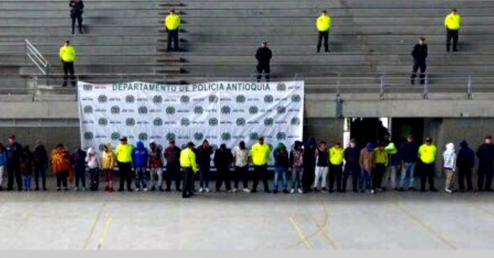 El pasado viernes 21 de abril, ante los Juzgados Penales Municipales, fueron notificados con medida de aseguramiento los presuntos integrantes de la banda «Los Pamplona», dedicados al narcomenudeo en el municipio de Rionegro. Fueron 36 de los sujetos capturados en días pasados, a quienes se les dictó medida de aseguramiento en centro carcelario.