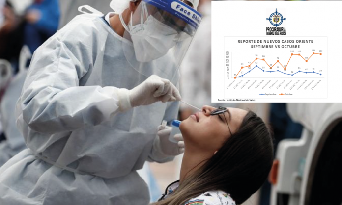 “A fecha del 13 de octubre se contabilizan 1.111 nuevos casos, comparados con el mes de septiembre que fueron 1.541. De los contagios se encuentra que un 18,44% de los casos en el Oriente están activos, lo que representa 970 pacientes”, señaló la Procuraduría en la misiva.