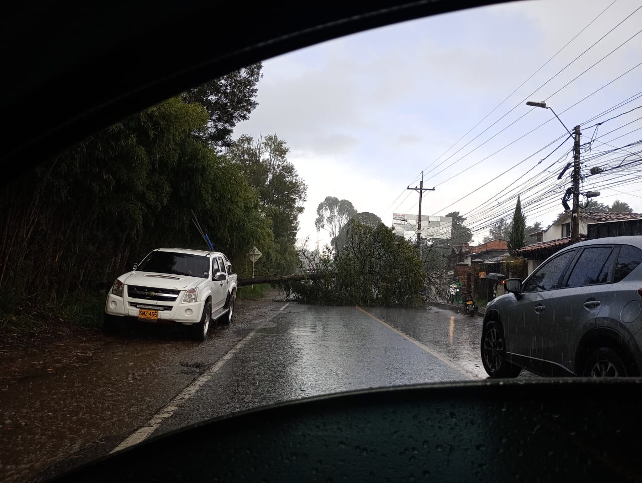 En una vía del sector La Galería, rumbo a la sede de Bomberos, se acaba de reportar la caída de un poste de energía, producto de las fuertes lluvias.