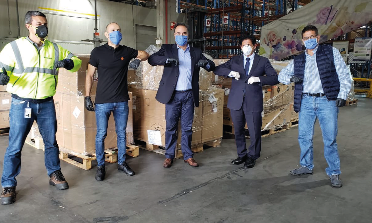 En el vuelo de la aerolínea Etihad llegaron 13 toneladas de insumos médicos: 15 mil overoles protectores, 15 mil vestidos médicos, 500 mil guantes, 30 mil cubiertas de zapatos y 20 mil máscaras, así como desinfectantes, que serán destinados al personal de la salud de Antioquia.