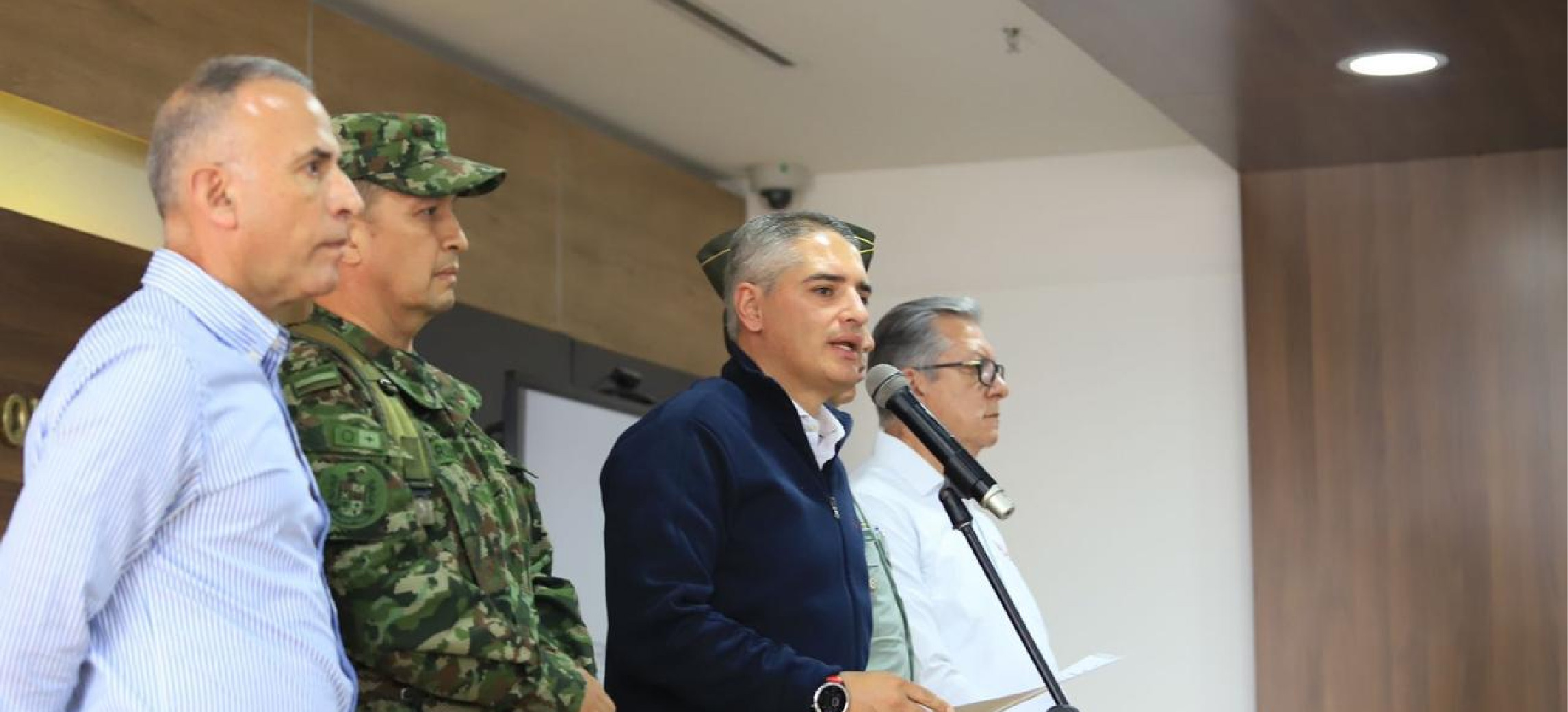 El gobernador de Antioquia, Andrés Julián Rendón, presentó este lunes 5 de febrero, en el edificio de la Gobernación, el balance de seguridad del primer mes del año en el departamento; en compañía del secretario de Seguridad, el general (r) Luis Eduardo Martínez; del general de la Séptima División del Ejército y del comandante de la Policía departamental.