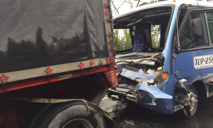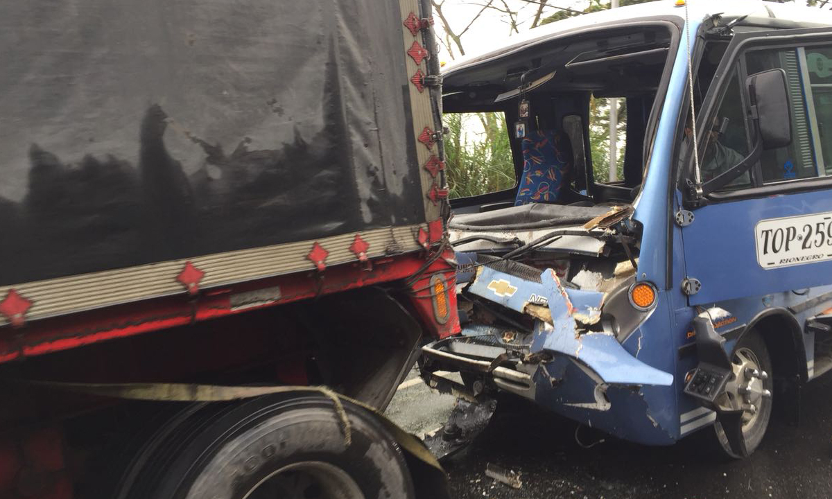 En la mañana de este viernes 11 de mayo se presentó un accidente de tránsito en el km 7+300 sector peaje Copacabana. El hecho ocurrió luego de que colisionaran un vehículo de servicio público del municipio de Rionegro y un tractocamión, dejando siete personas lesionadas.