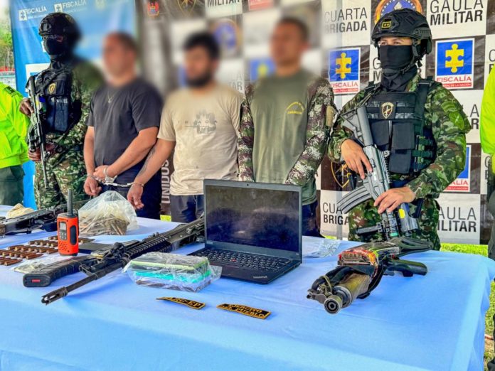 Según el reporte oficial, la acción fue adelantada por tropas del Grupo Gaula Valle de Aburrá, adscritas a la Cuarta Brigada. Durante el procedimiento fueron incautados un fusil, dos armas cortas, cuatro proveedores, municiones de distintos calibres y material de intendencia.
