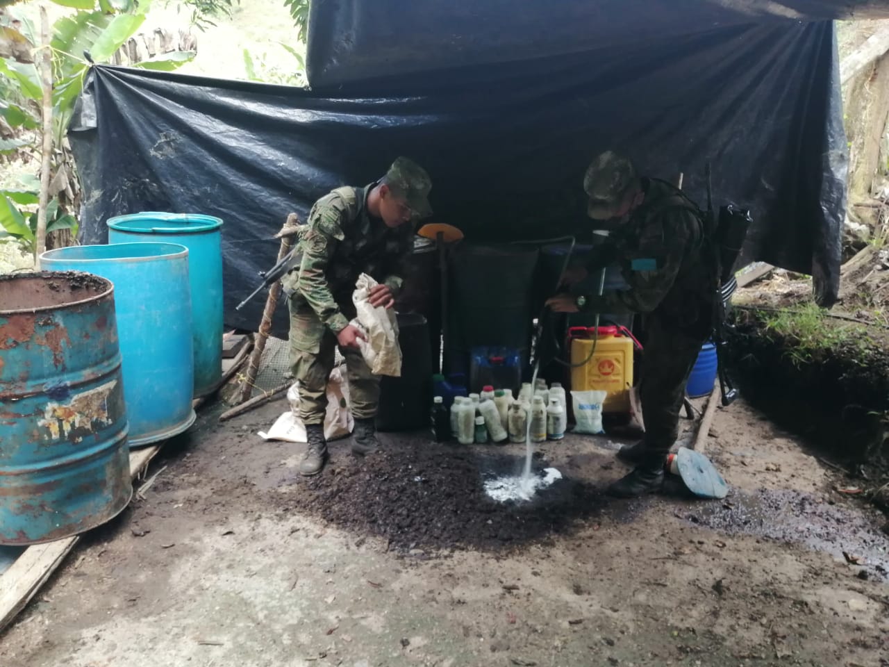 En los últimos días, las autoridades lograron la ubicación y destrucción de un laboratorio para el procesamiento de pasta base de coca, en la vereda Alto Bonito del municipio de San Luis.
