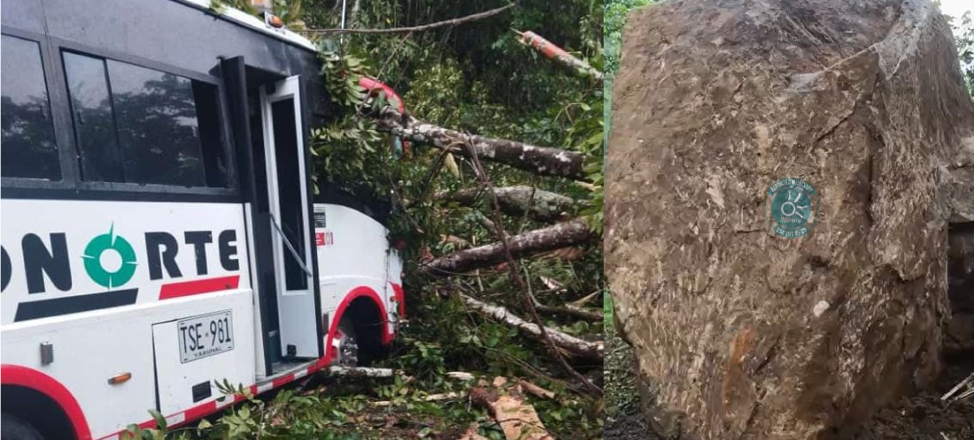 En la mañana de este sábado 22 de junio, una gran roca se desprendió de la parte alta de una montaña en la autopista Medellín-Bogotá, jurisdicción de San Luis, sector Filo de Hambre. También se desprendió material vegetal.