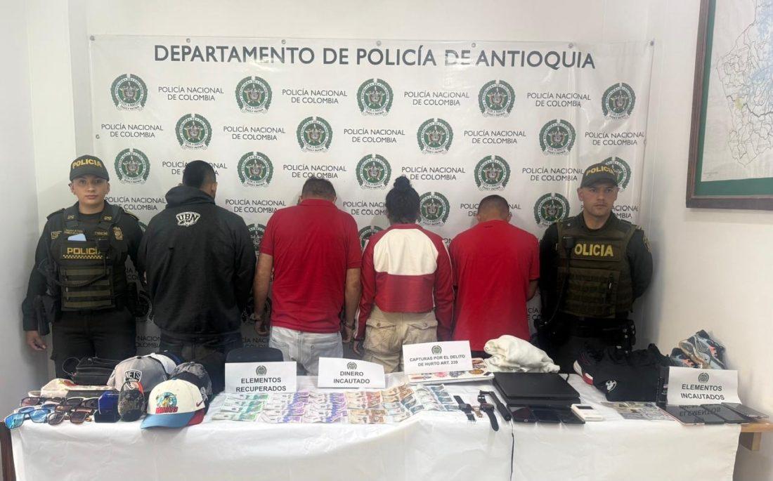 La víctima denunció la situación, lo que legalizó la captura de los cuatro responsables, quienes fueron informados de sus derechos y trasladados a la estación de policía para su judicialización. Los capturados fueron dejados a disposición de la Fiscalía Seccional de El Peñol, por el delito de hurto.