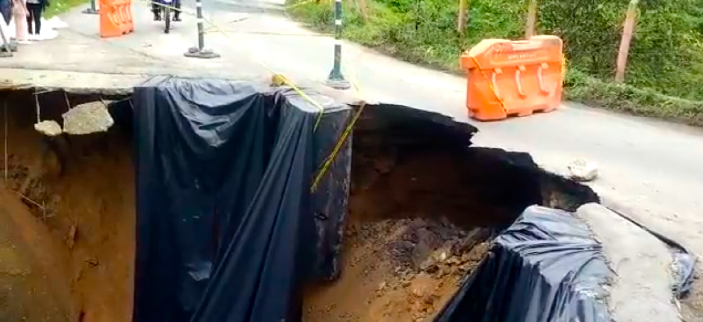 Precisamente, en el kilómetro 12+200 de ese corredor vial —cuyo responsable es la Gobernación de Antioquia— se presentó un hundimiento de banca que involucra casi plenamente la calzada, de modo que se encuentra inhabilitado el paso hacia esta localidad del Oriente Antioqueño.