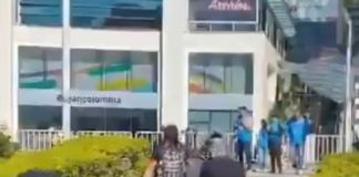 Durante manifestación pro-Palestina, encapuchados lanzaron pintura e intentaron entrar a la sede de la Andi en Medellín