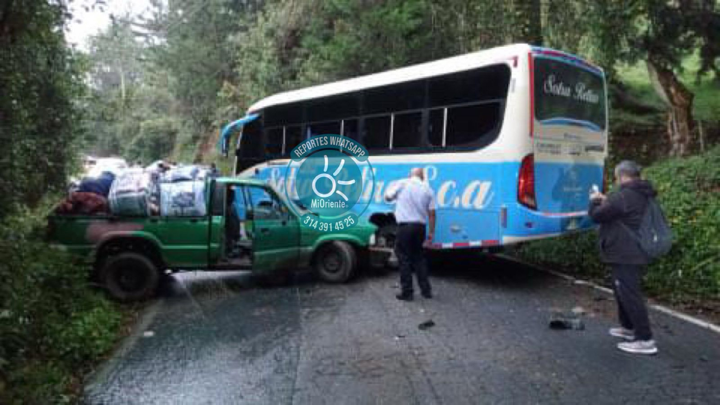 Camioneta y bus colisionaron en la vía La Ceja-El Retiro, dejando a una persona herida
