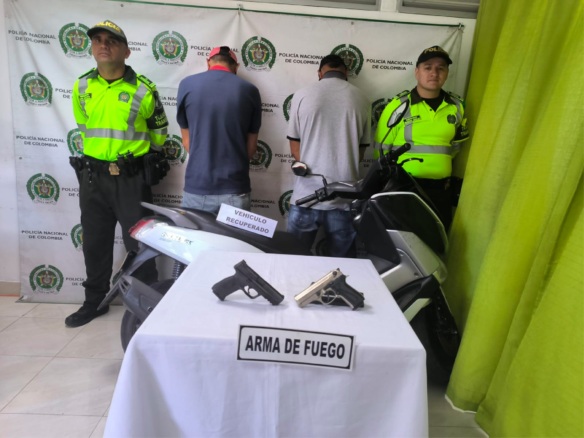 Según las autoridades, a los jóvenes les incautaron dos armas traumáticas tipo pistola, un proveedor, tres cartuchos, una pistola traumática y un proveedor con ocho cartuchos para la misma. Además, en el operativo se recuperó una motocicleta.