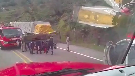 Nosotros recibimos el llamado a eso de las 4:30 p. m. y de inmediato salimos para el lugar, luego de hacer las verificaciones podemos decir que se trato de la colisión de una moto contra un vehículo de carga, producto de este hecho dos jovenes quedan lesionados