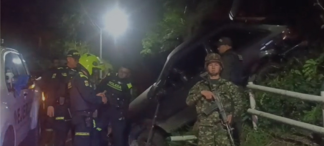 Posteriormente, en la persecución, el carro en el que se movilizaban los presuntos delincuentes chocó contra un barranco y allí fueron capturados, por los delitos de tráfico, fabricación o porte de estupefacientes y tráfico, porte y/o tenencia de armas.