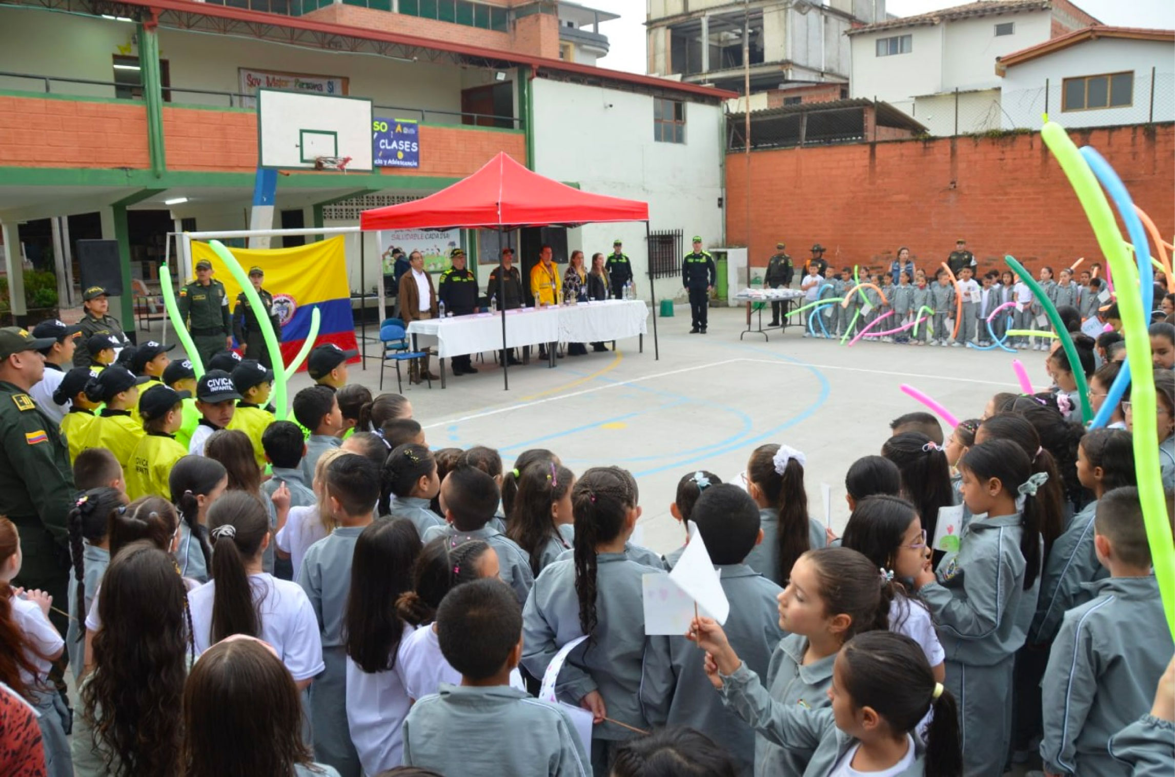 Con el fin de prevenir la violencia escolar y desmantelar a los grupos multicrimen que afectan los entornos escolares, la policía de protección a la infancia y adolescencia y con participación de la comunidad académica, conforman a partir de hoy 54 frentes de seguridad escolar, estrategia diseñada para consolidar espacios educativos seguros y protectores, que permitan a la niñez fortalecer las habilidades sociales y potenciar estudiantes íntegros.