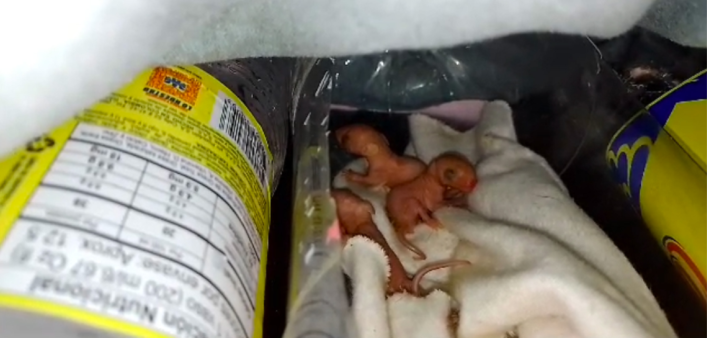 Fueron seis crías, les puse dos botellas de agua tibia a los lados para que les diera calor, ya que estaban heladas