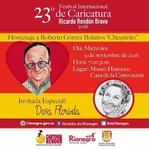 Esta nueva versión se realizará del 9 al 13 de noviembre de 2016 y su inauguración será el próximo miércoles en el Museo Histórico Casa de La Convención, “el festival este año pretende dar continuidad a un homenaje que se le ha hecho a “Chespirito” en varios países. Alrededor de 300 caricaturistas de 15 países realizaron caricaturas de este personaje en sus diferentes facetas”, dijo Luis Fernando Hincapié Echeverri, fundador y director del Festival Internacional de Caricatura Ricardo Rendón Bravo.