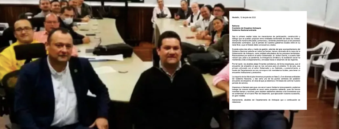 En este mismo texto los alcaldes resaltaron que, durante sus dos años y medio de gestión, han recibido acompañamiento del Gobierno Nacional saliente en todos los frentes, y que han caminado de la mano de la Gobernación de Antioquia como entidad articuladora de los procesos territoriales.