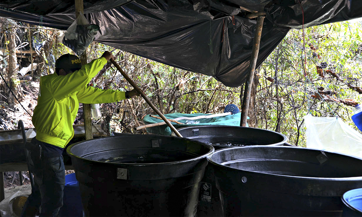 Labores de inteligencia e investigación criminal dejaron al descubierto este laboratorio rústico. Se presume que allí trabajaban más de 25 personas y que generaba ganancias de mil millones de pesos mensuales.