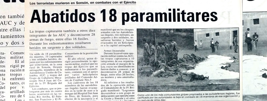 Apenas ahora la justicia colombiana intenta esclarecer lo ocurrido en La Pinera a través de la investigación adelantada por la Fiscalía 74 de Medellín, encargada de las ejecuciones extrajudiciales, conocidas comúnmente como ‘falsos positivos’